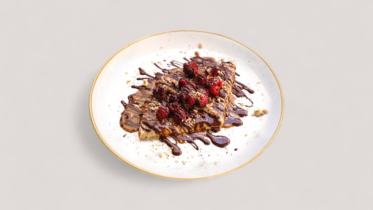 Jaja, whey protein, kokosovo brašno, sojino mleko, kikiriki puter, crna čokolada, maline, lešnik (572 kcal, 18g ugh, 44g m, 26g p)