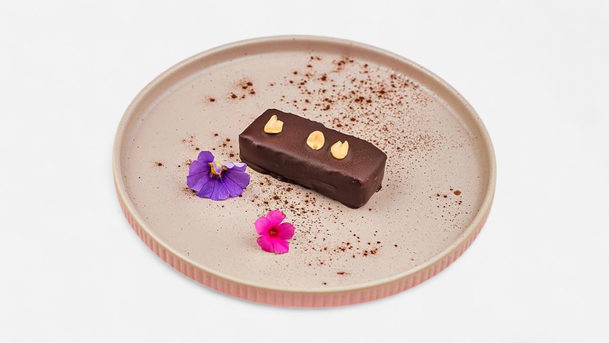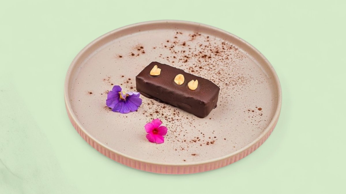 Lešnik, badem, indijski orah, urme, espreso prah, kakao, crna čokolada, vanilin ekstrakt, kokosov krem, kokosovo ulje (510 kcal, 33g ugh, 37g m, 10g p)