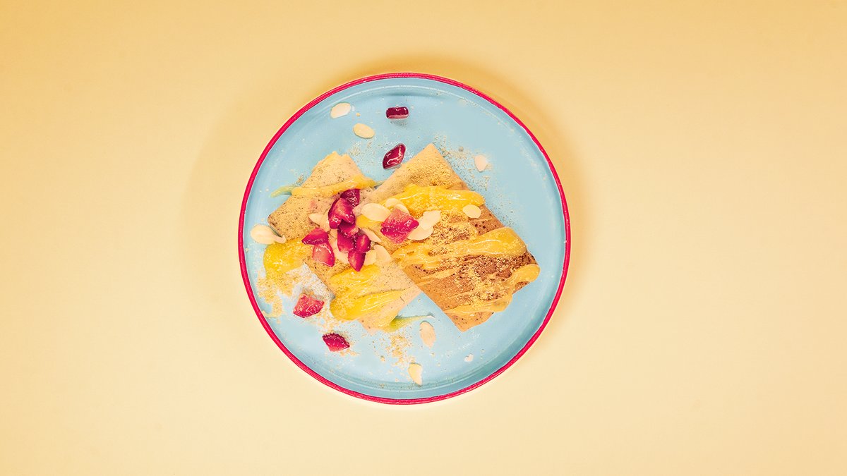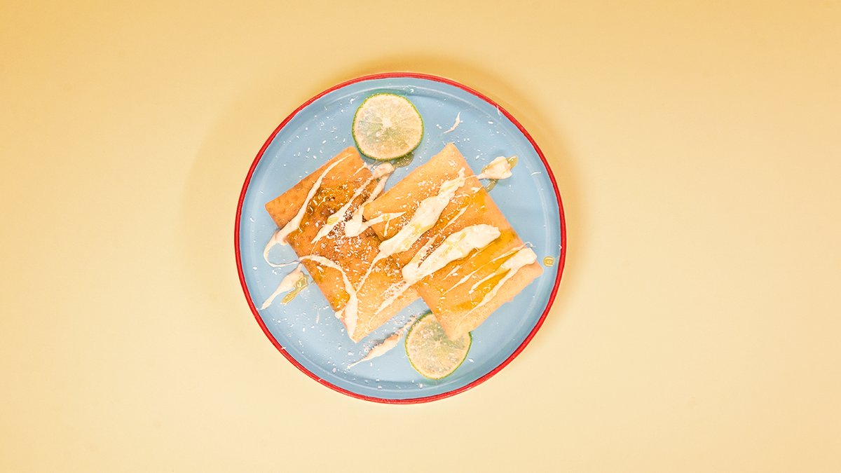 Kokos crunch krem, plazma-limeta, marakuja sos