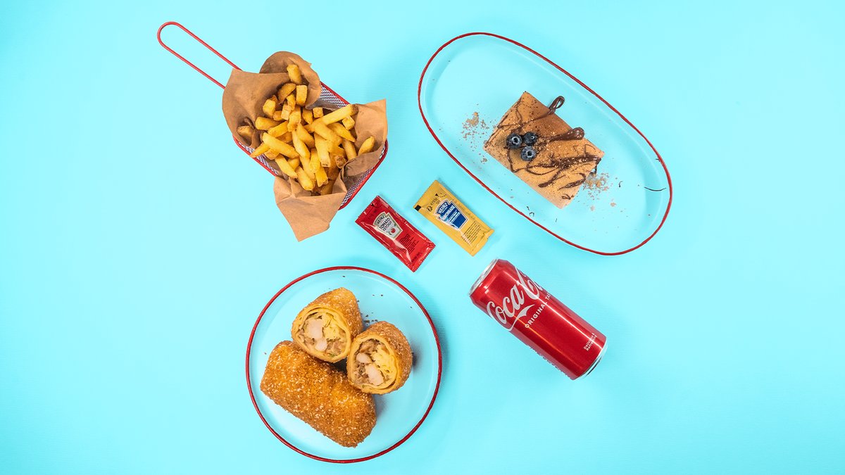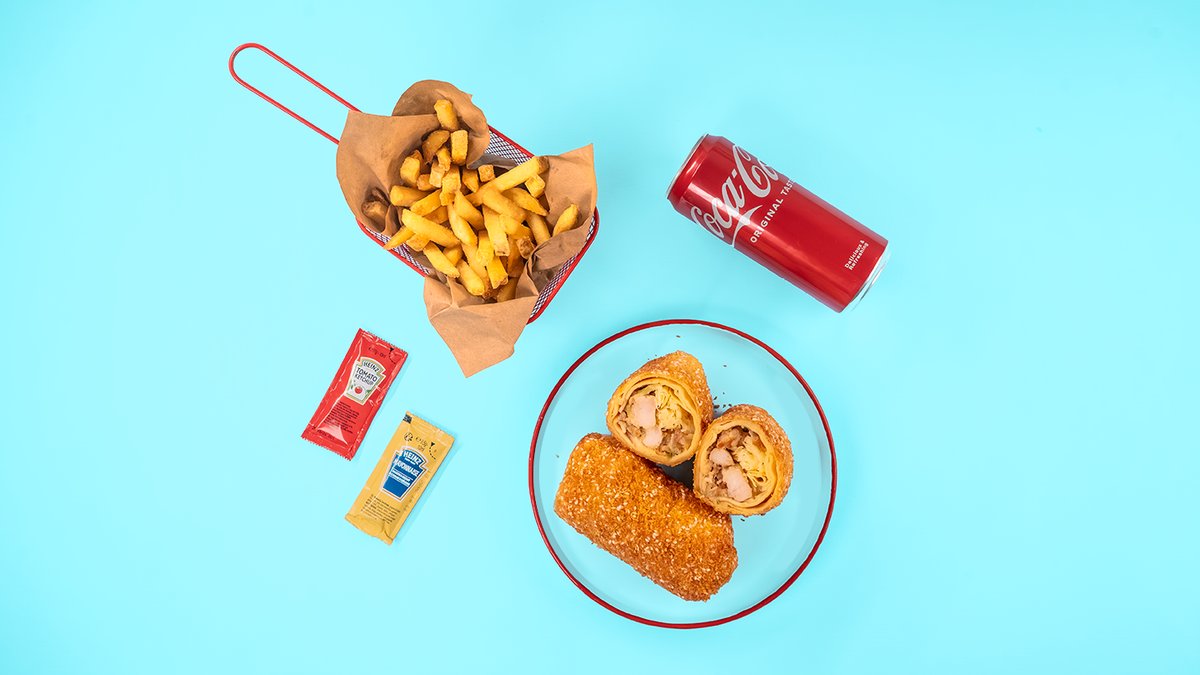 2 slane palačinke, pomfrit, sok po izboru, Heinz kečap i majonez (kesice)