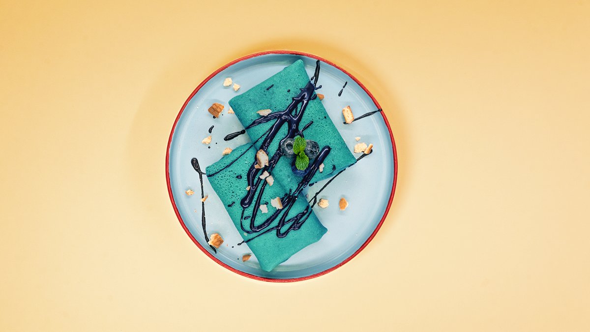 Crna čokolada, borovnica fil, mint sos, komadići keksa