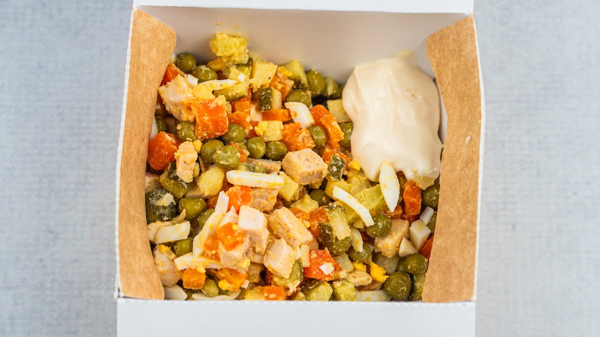 Ruska salata sa pečenom piletinom (200g)
