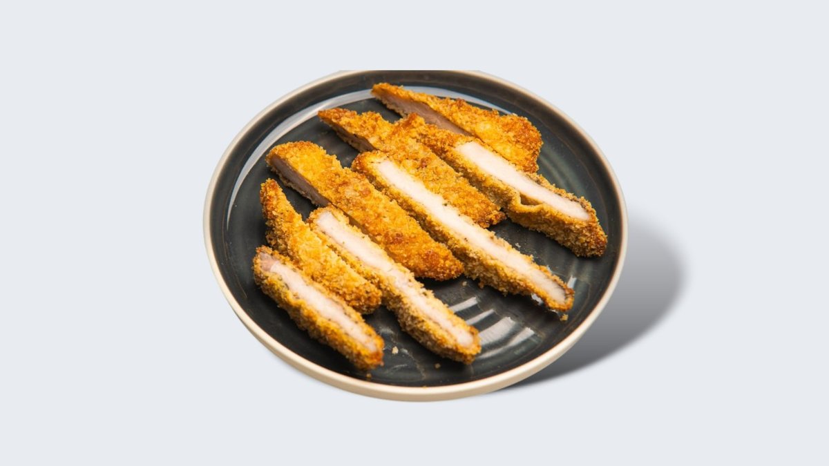 Piletina, panko prezle, crni biber, pšenično brašno, jaja, inćuni u ulju, sveži beli luk, dižon senf, šećer, vorčester sos, majonez, pečena heljda