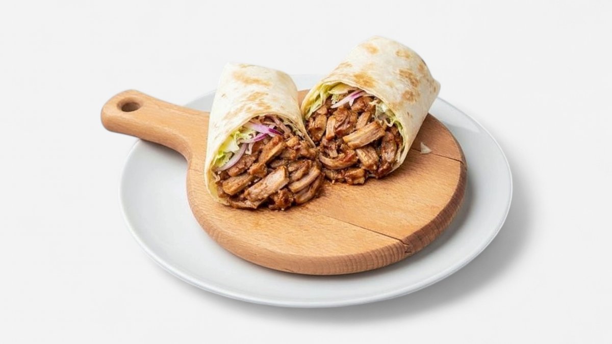 Tortilja, gyros piletina, pomfrit