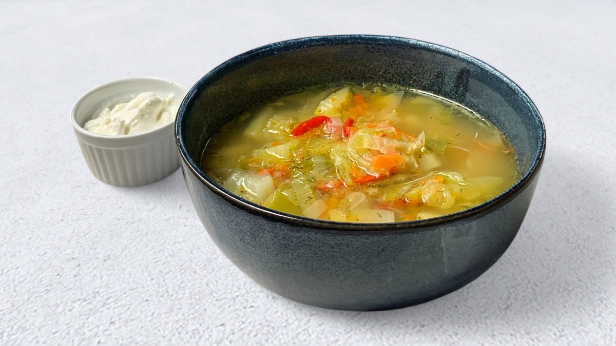 Pileći bujon, piletina, krompir, šargarepa, beli kupus, paprika, začini