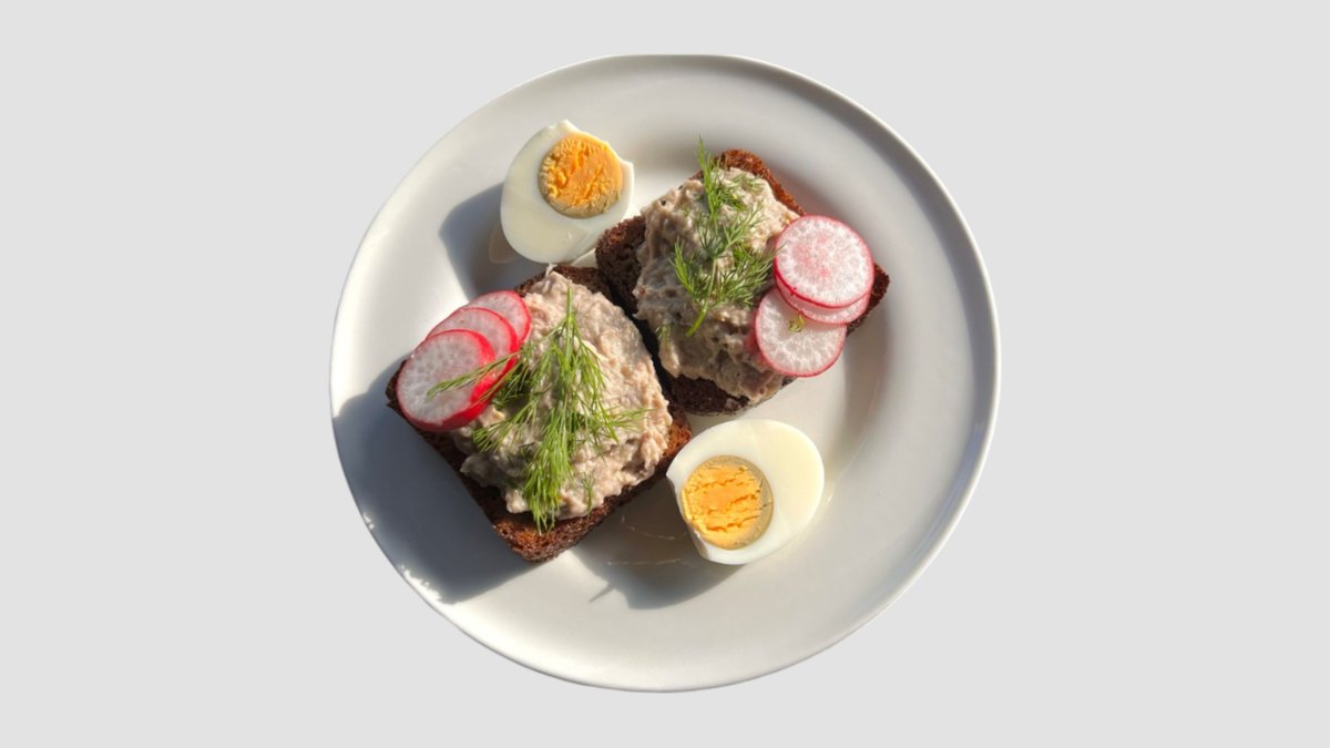 Hleb od kiselog testa, krem sir, tuna, avokado, jaje, rotkvica, paradajz, balzamiko sos, 1 kom