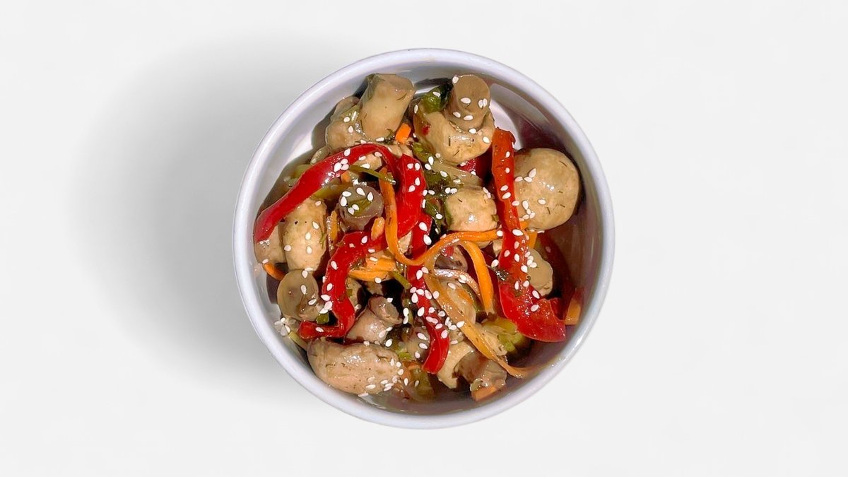 Piletina, kupus, šargarepa, luk, krastavci, paradajz, sos od pavlake