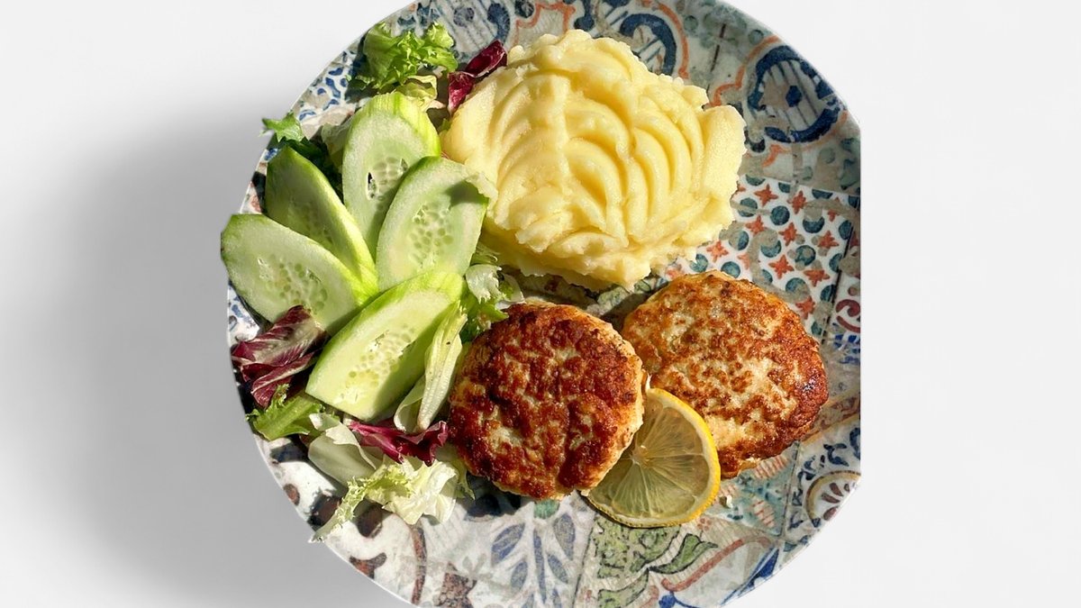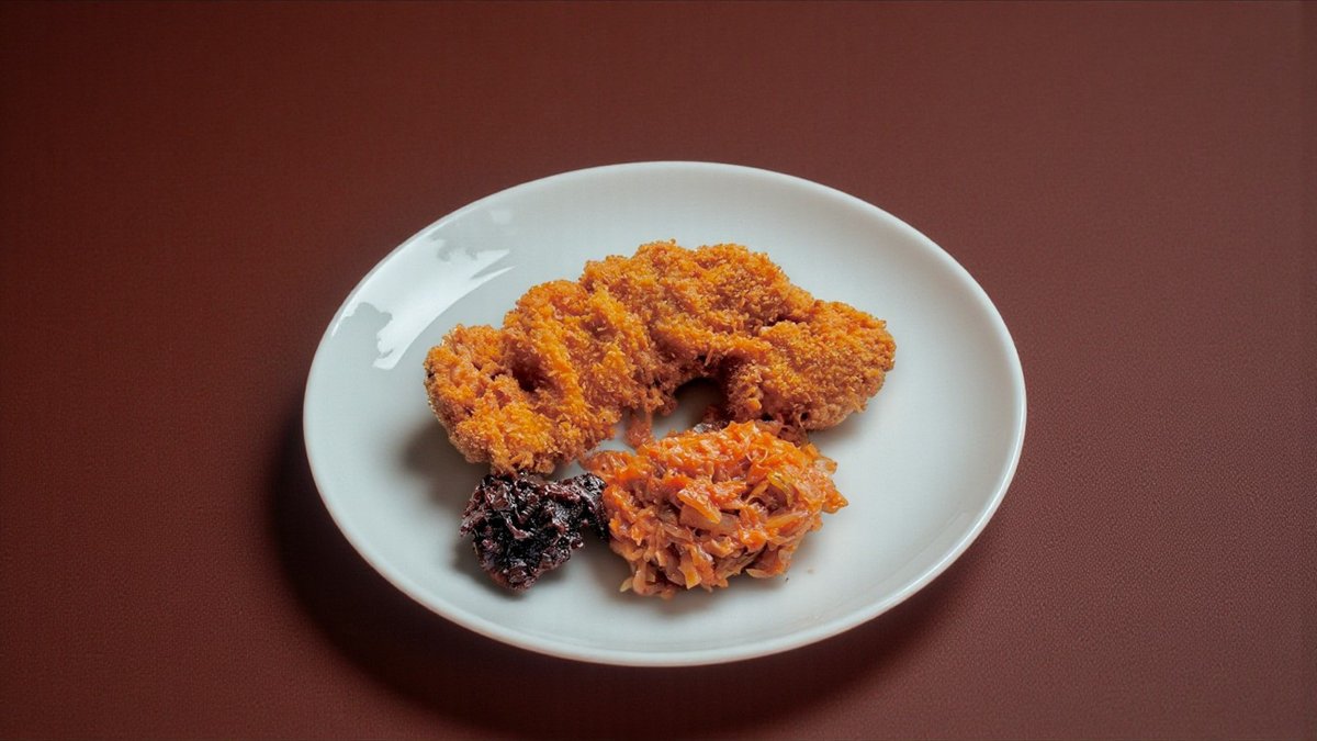 svinjetina pržena u fritezi, kupus, paradajz, crveni luk