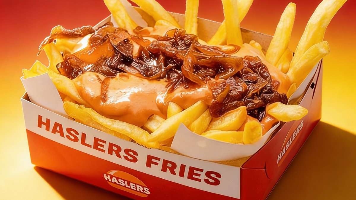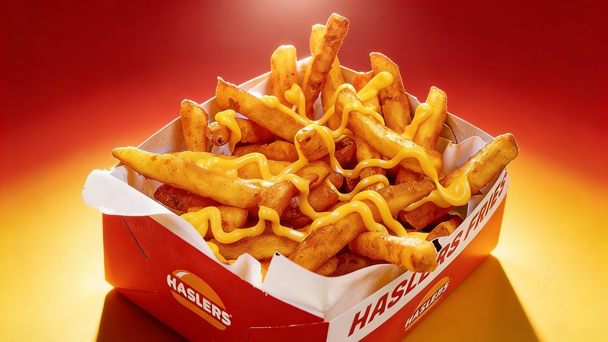 Double Bacon Supreme presečen na pola i potopljen u luksuzni kremasti Haslers® cheddar sos. Vruća eksplozija sira u svakom zalogaju!