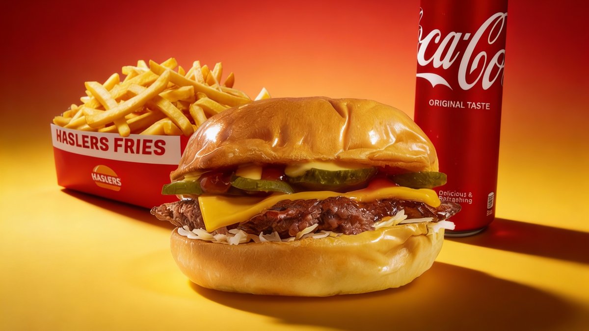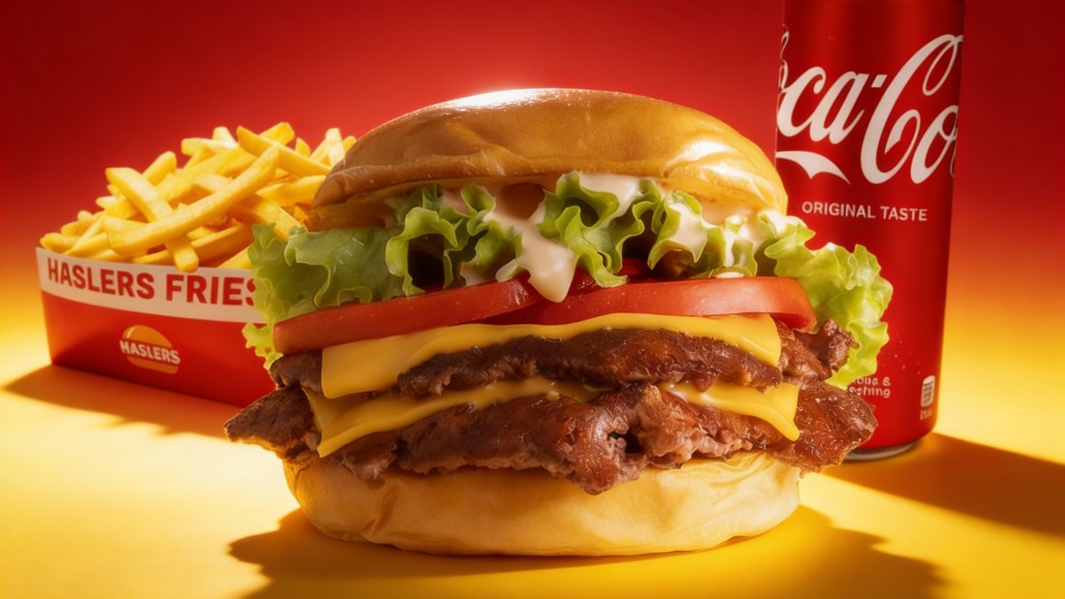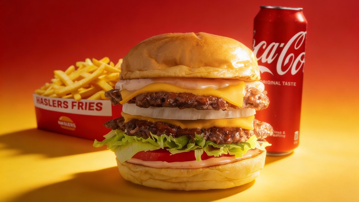 Dvostruki Cheeseburger sa slaninom presecen na pola i potopljen u luksuzni kremasti Haslers® cheddar sos. Vruca eksplozija sira u svakom zalogaju!