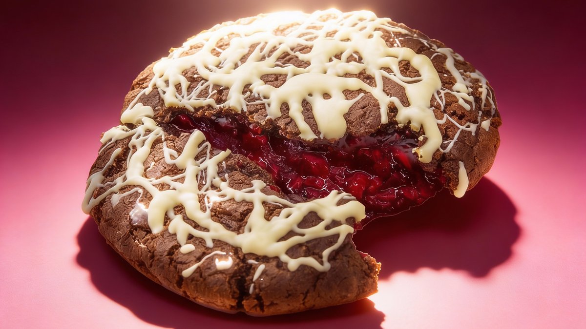 XXXL cokoladni cookie punjen malinama i preliven vrhunskom belom cokoladom
