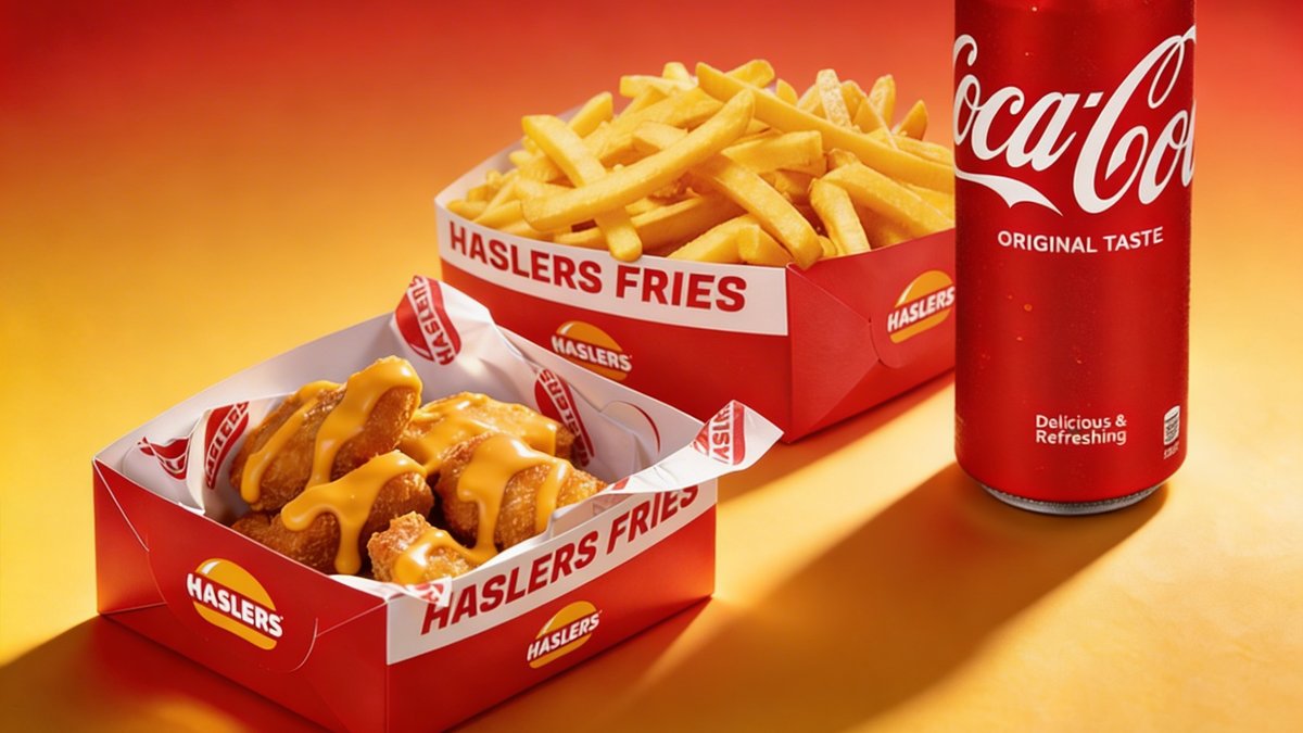 Ovaj box za ekipu cini 6 dvostrukih Cheeseburgera sa slaninom koji su preseceni na pola i potopljeni u luksuzni kremasti Haslers® cheddar sos + GRATIS 4 pomfrita, 2 regular i 2 zacinjena. Vruca eksplozija sira u svakom zalogaju!