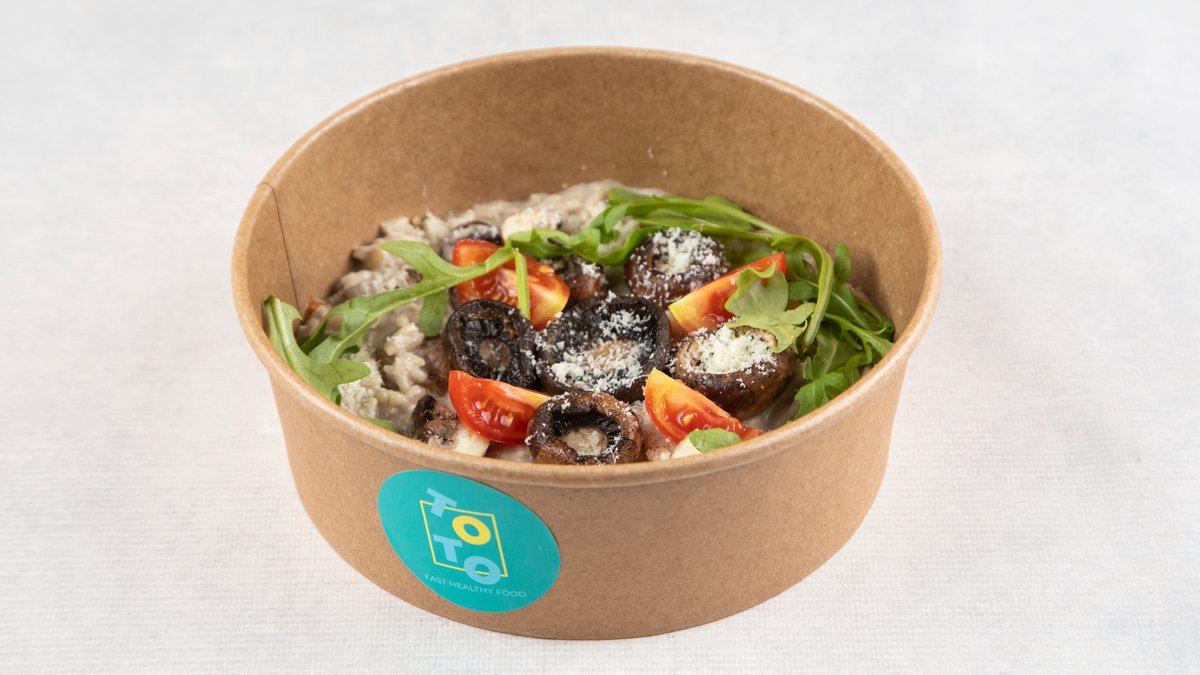 Pirinač, organski šampinjoni, pavlaka, parmezan, rukola, cherry paradajz