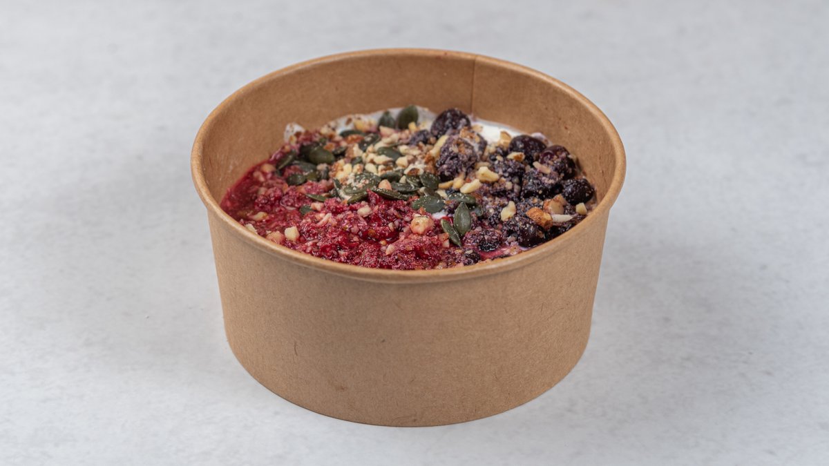 355kCal; Sastojci :Ovsene pahuljice,čia semenke,banana,borovnica,badem sirovi,voda