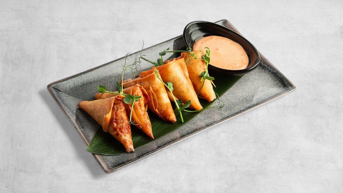 Piletina, škampi, spring testo, spicy sos – 140/40g