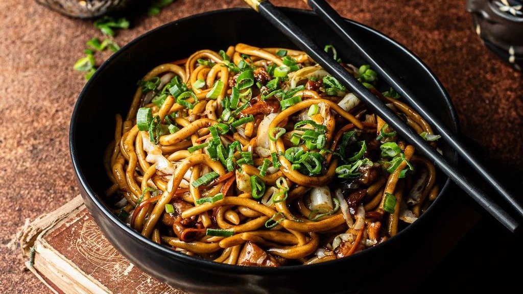 Piletina, pečurke, mladi luk, kupus, crni biber (Chicken, noodles, onion, cabbage, black pepper)