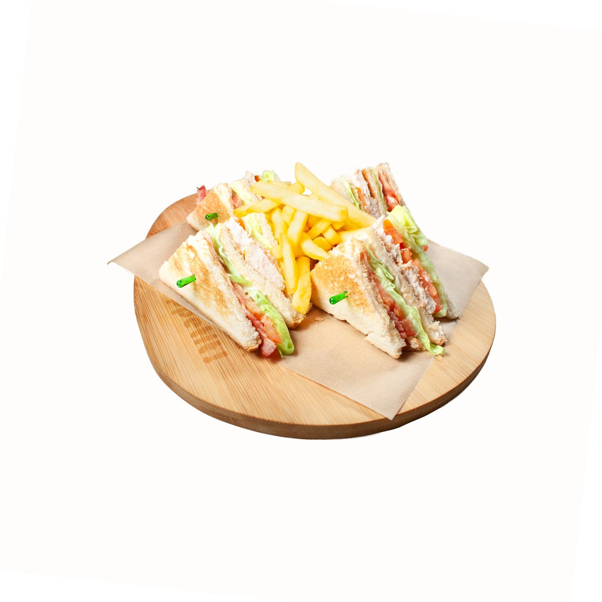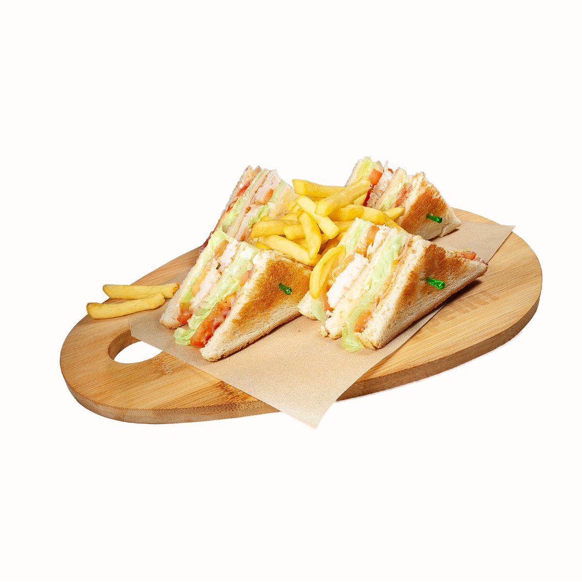 Tost hleb, pileci file, paradajz, ajsberg, slanina, majo, pomfrit