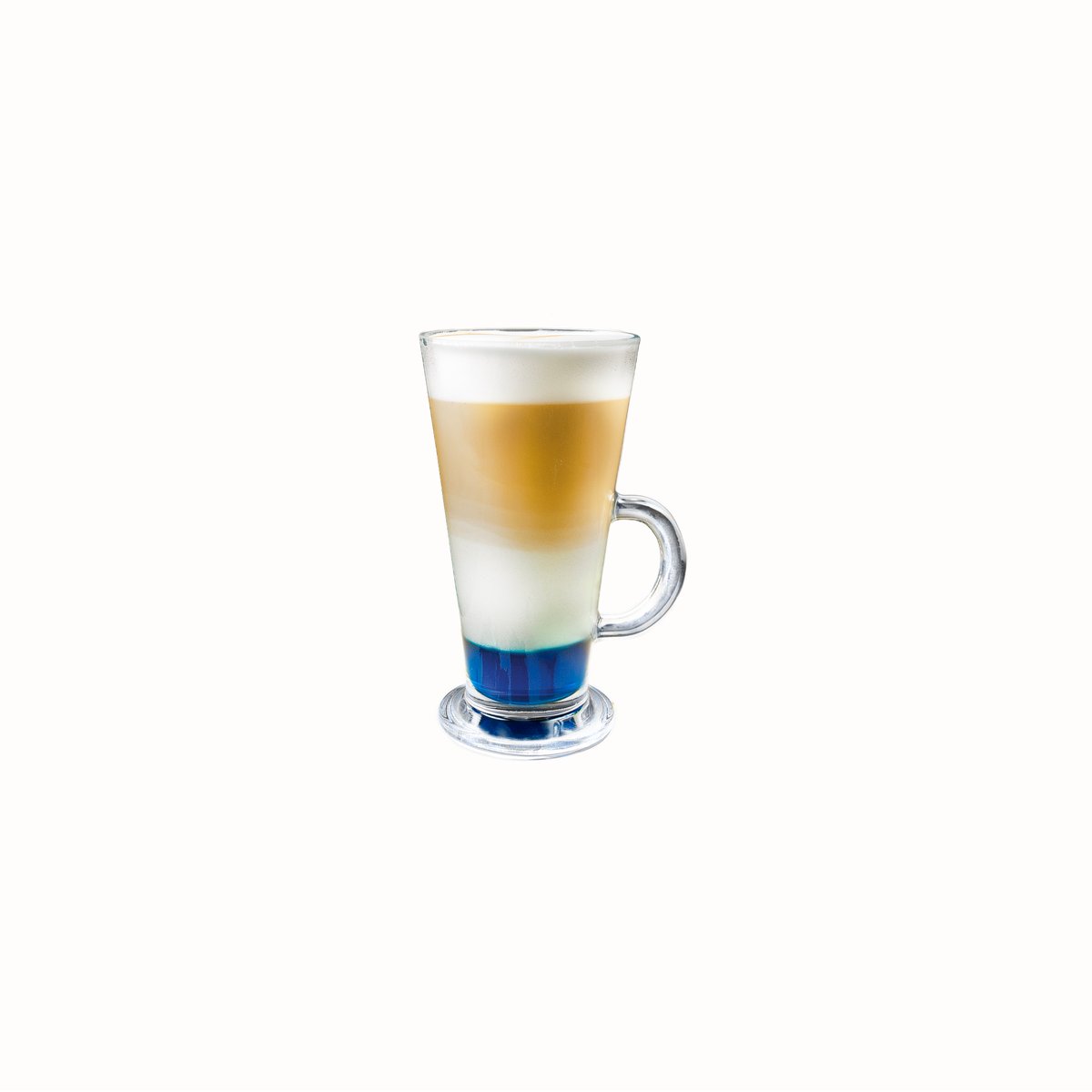 Osvežavajući latte sa plavim tropskim sirupom i mlečnom penom — egzotičan i lagan.