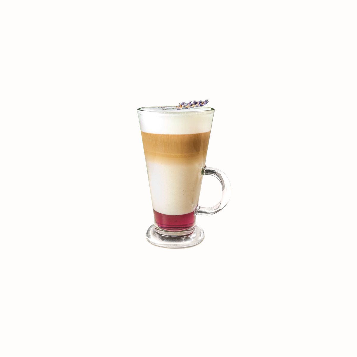 Kremasti latte sa lavandinim sirupom i mlečnom penom.