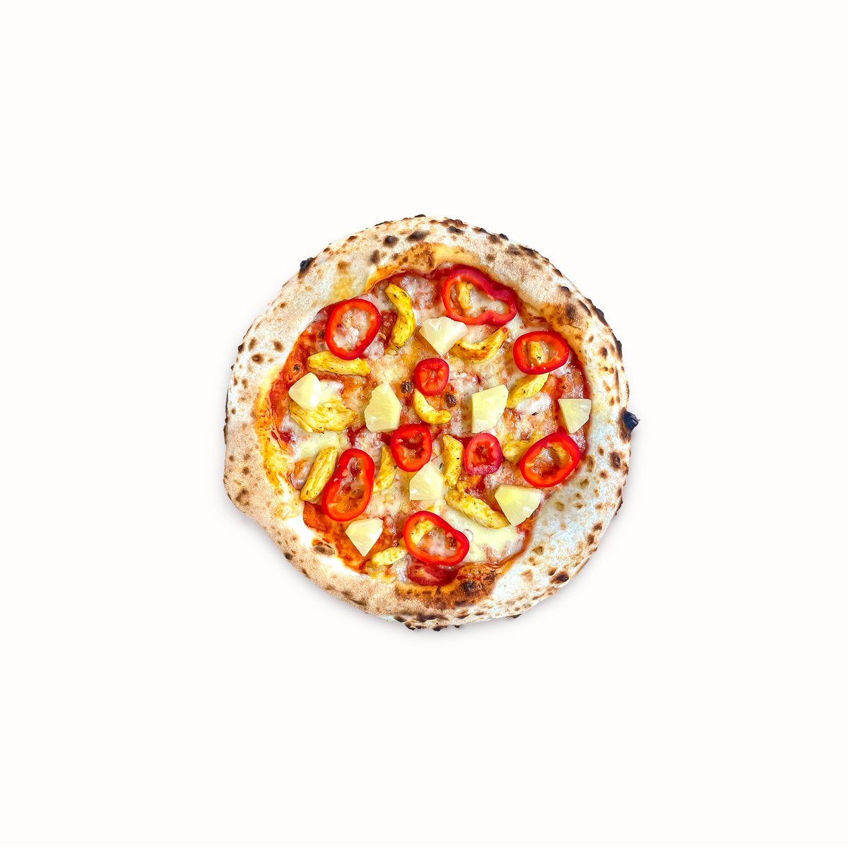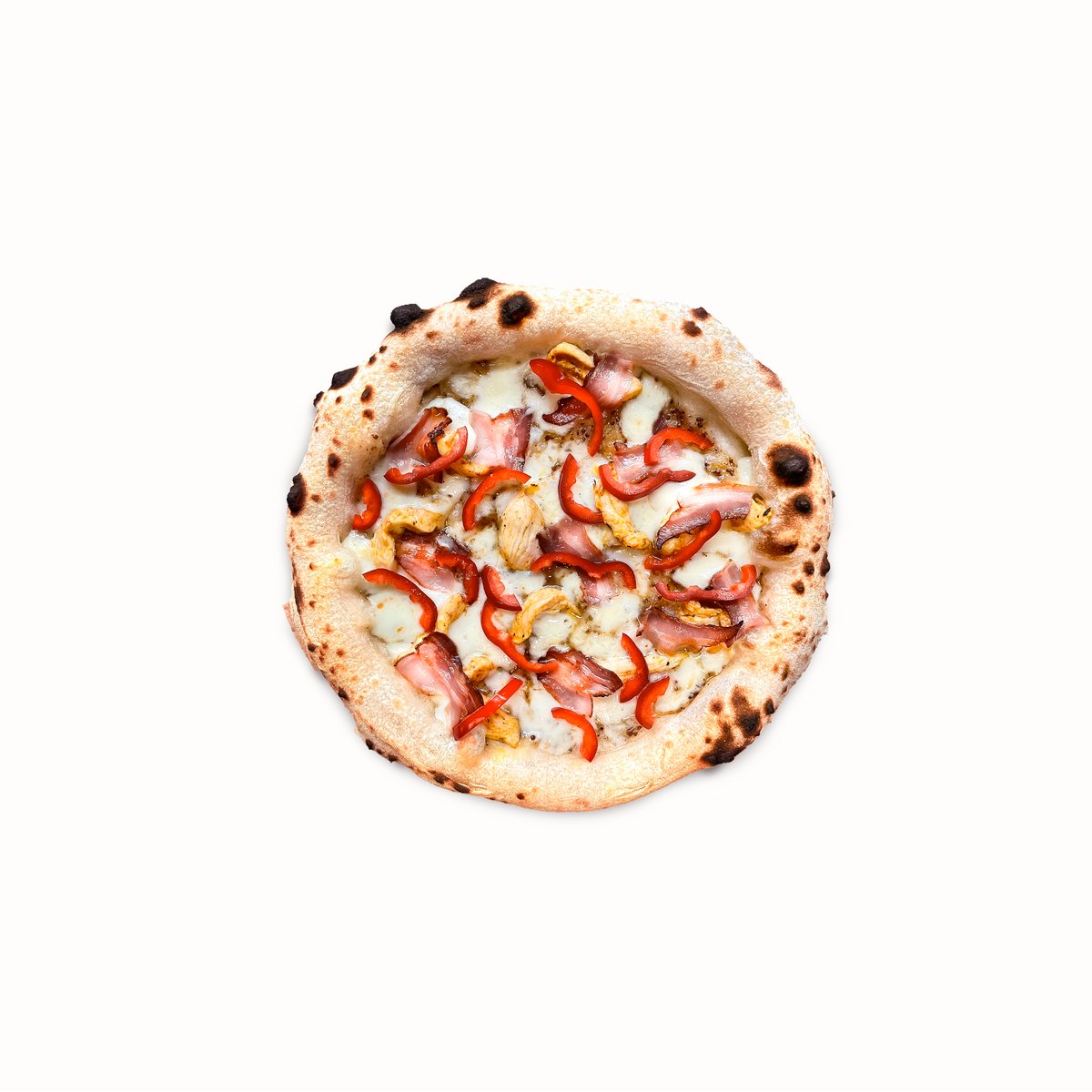 sos beli/ pizza po izboru, mocarela, pileći file, šampinjoni, dimljeni sir