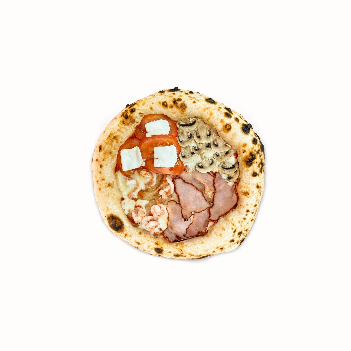 sos beli/ pizza po izboru, mocarela, šunka, paradajz, parmezan