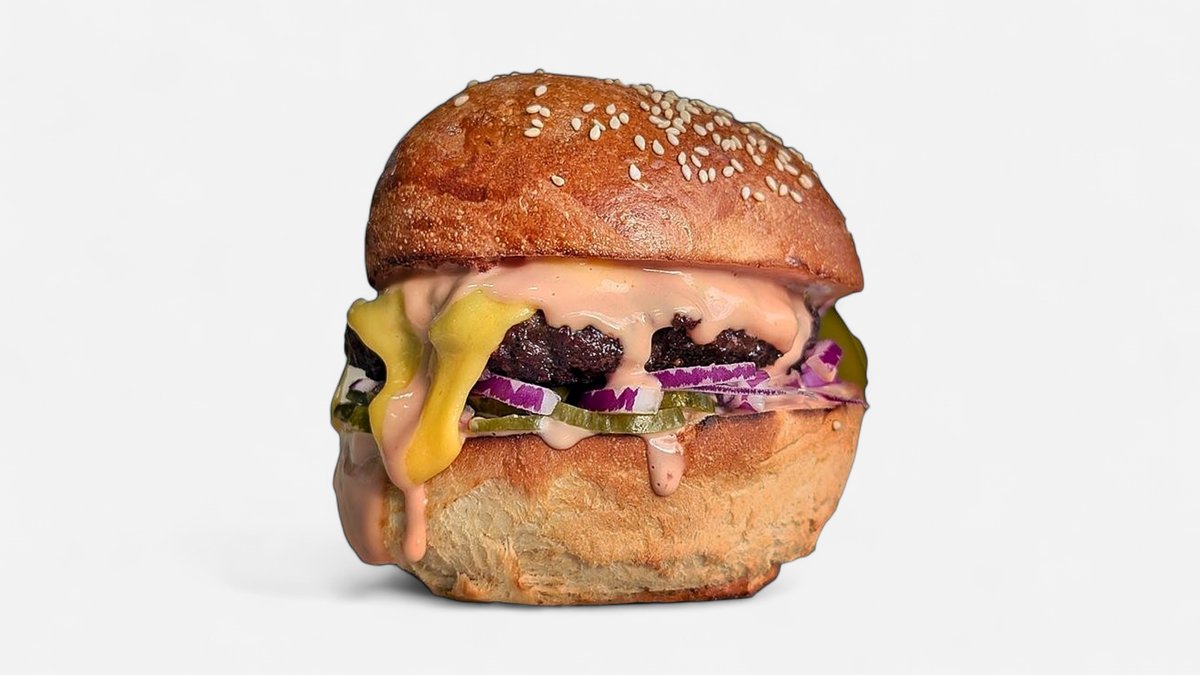 Domace zemicke, 100% govedina, crveni luk, kiseli krastavac, cedar, sos kecap-majo
