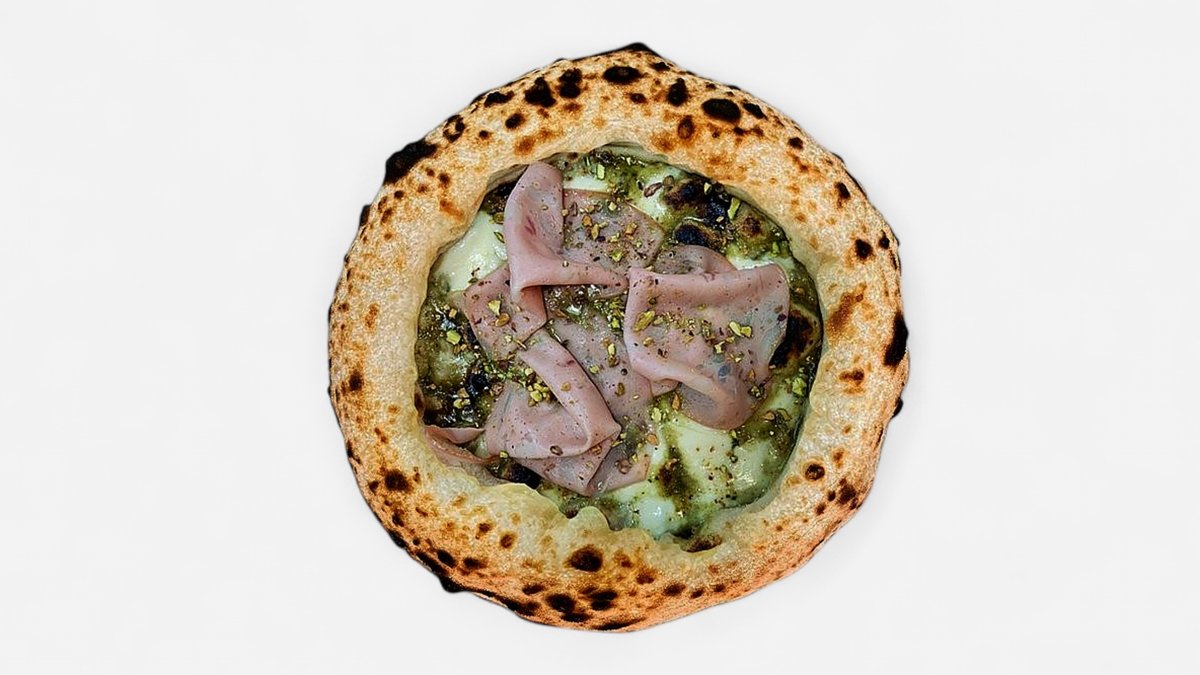 Pasta od pistaca, pesto sos, mocarela fior di latte, parmezan, mortadela, pistaci