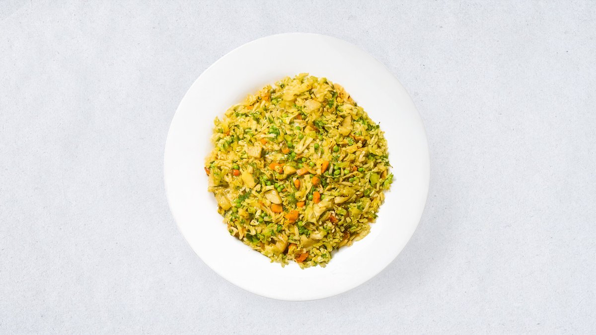 Veg Biryani is a fragrant, flavorful rice dish made with basmati rice, mixed vegetables, and a blend of aromatic spices like cinnamon, cloves, and cardamom. It's cooked with saffron or food coloring for added color and richness.