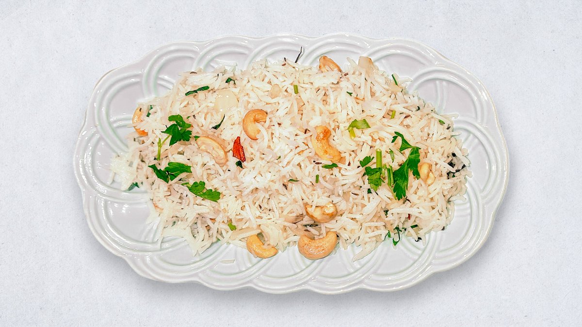 Kaju Rice is a fragrant, flavorful dish made with basmati rice and roasted cashews. The rice is cooked with aromatic spices like cumin, cardamom, and cinnamon, giving it a rich, nutty flavor, making it a perfect side for curries or vegetables.