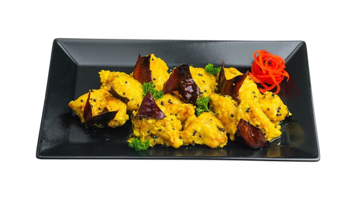 Originating from South India, this dish is typically made by marinating boneless chicken pieces in a mixture of yogurt, spices, and herbs like ginger, garlic, and chili powder.
