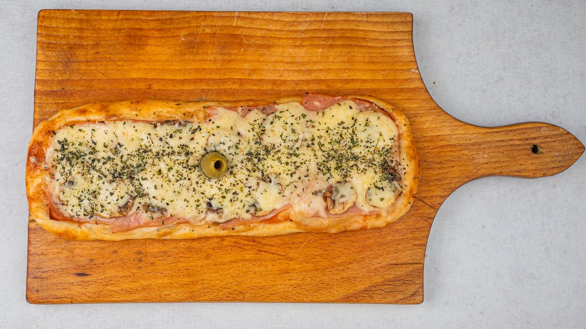 Pelat, šunka, kačkavalj, origano, maslina
