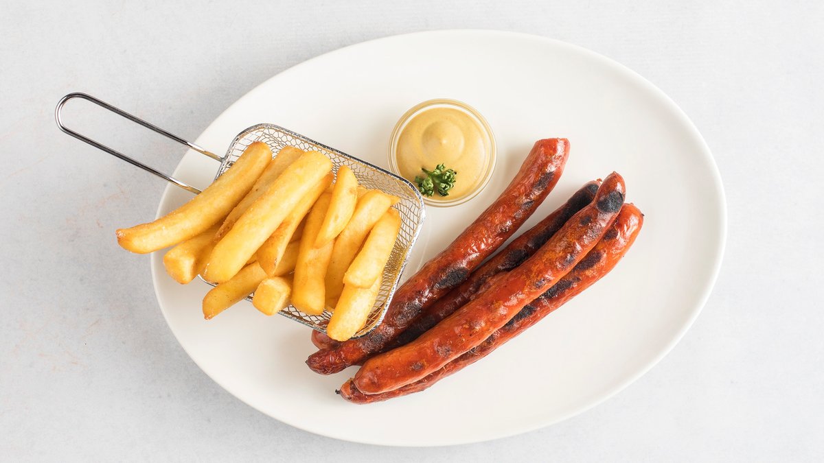 Kobasice punjene mesom i kačkavaljem, Surecrisp fry dip krompir, senf