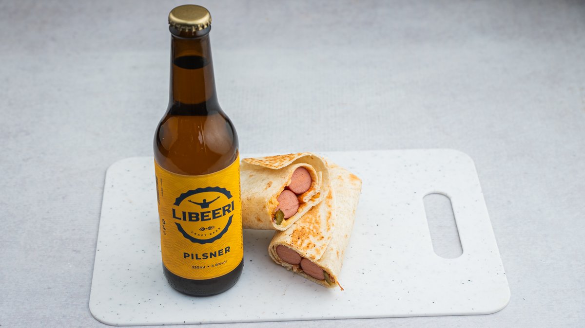 Dupli Hot Dog u tortilji i Libeeri pivo 0.33