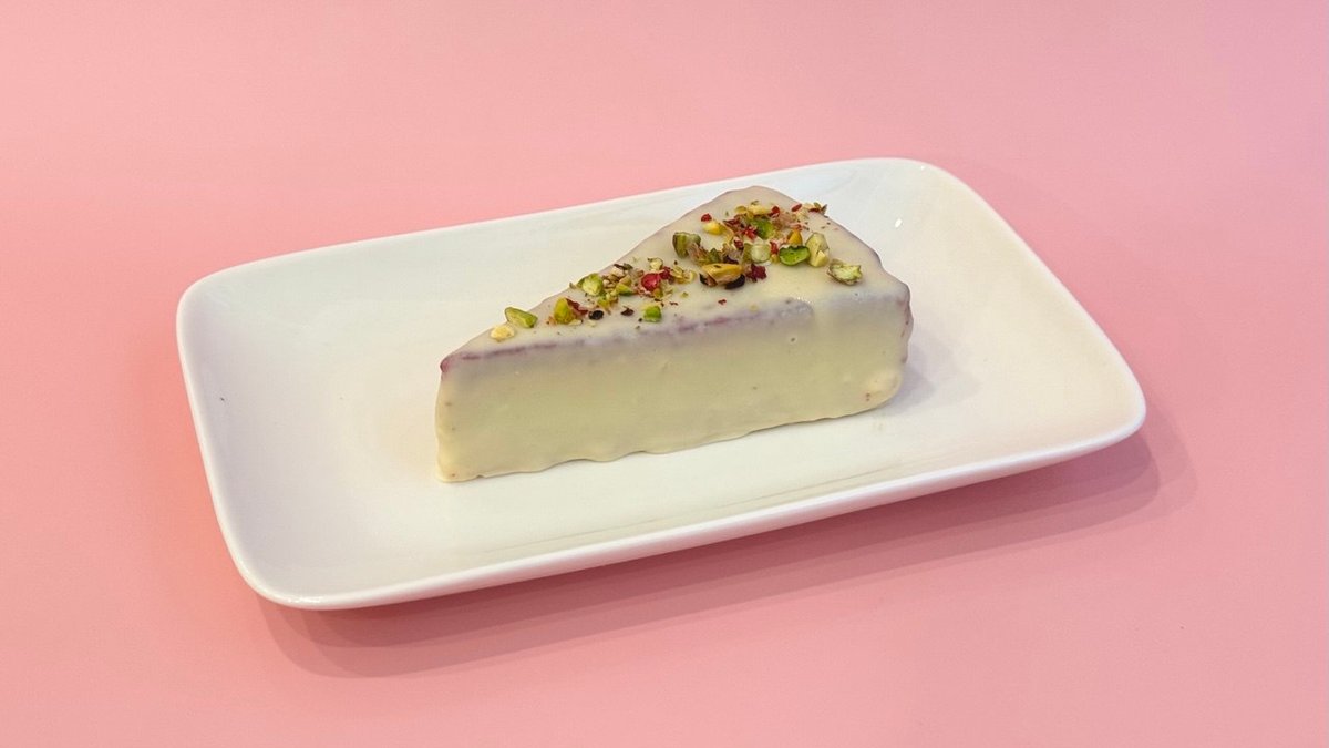 Klasični krambl, kremasto-sirna osnova sa dodatkom pistać paste, malina konfi 140g