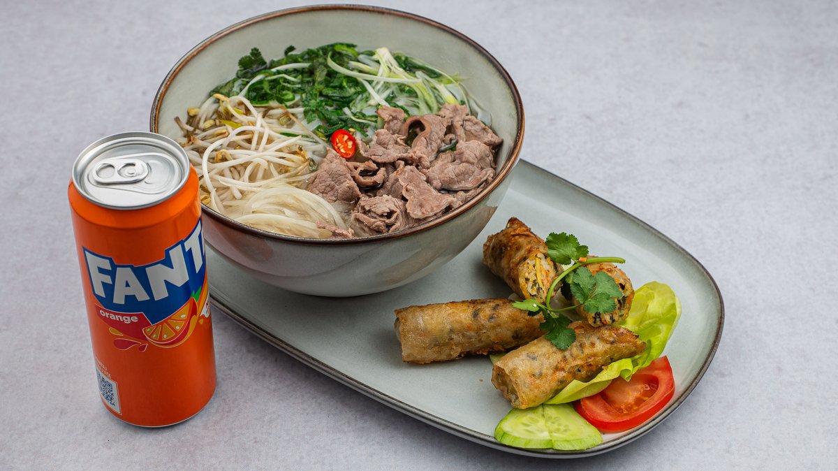 Combo 2 (Pho bo + 2 pržene prolećne rolnice + piće)