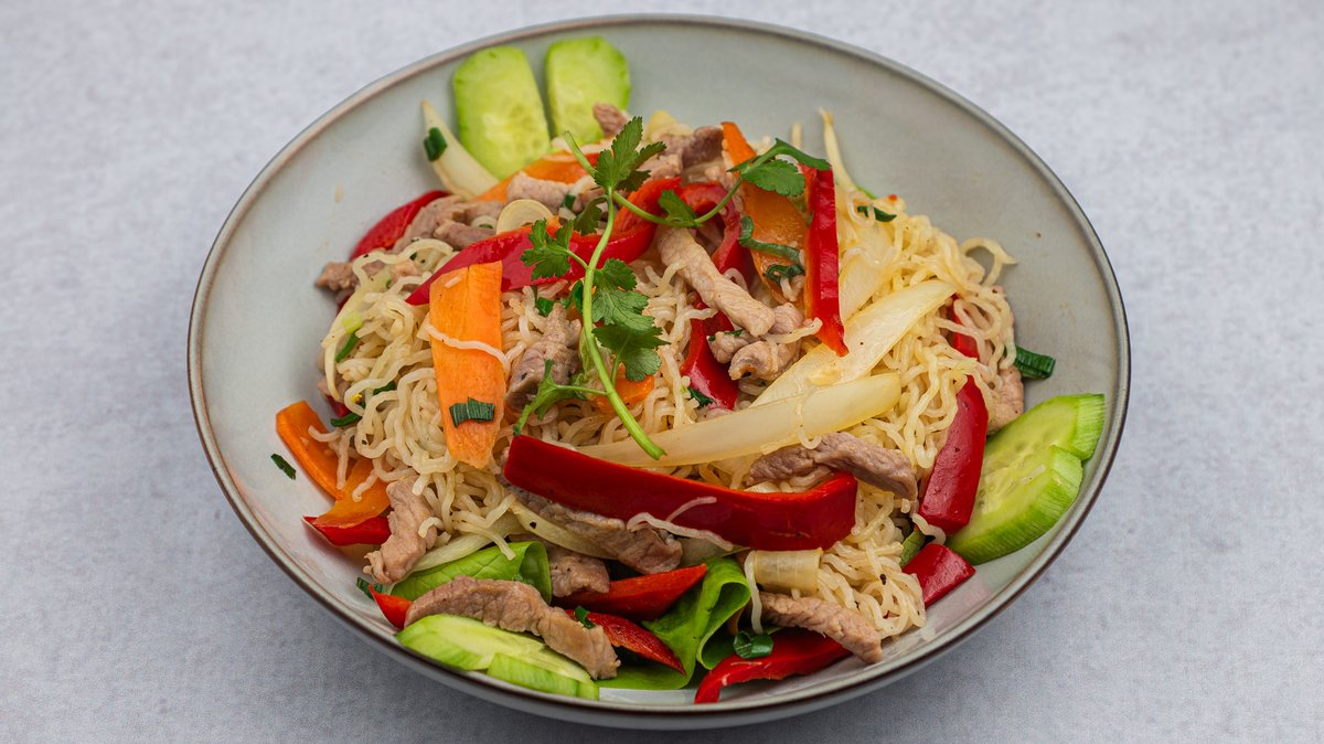 Pržene pirinčane nudle sa junetinom - Fried rice noodle with beef