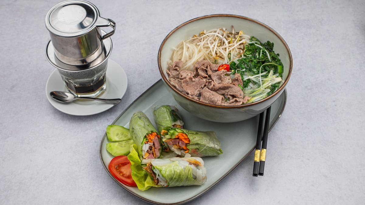 Combo 1 (Pho Bo + 2 komada prolećne rolnice + Cafe Vietnam)