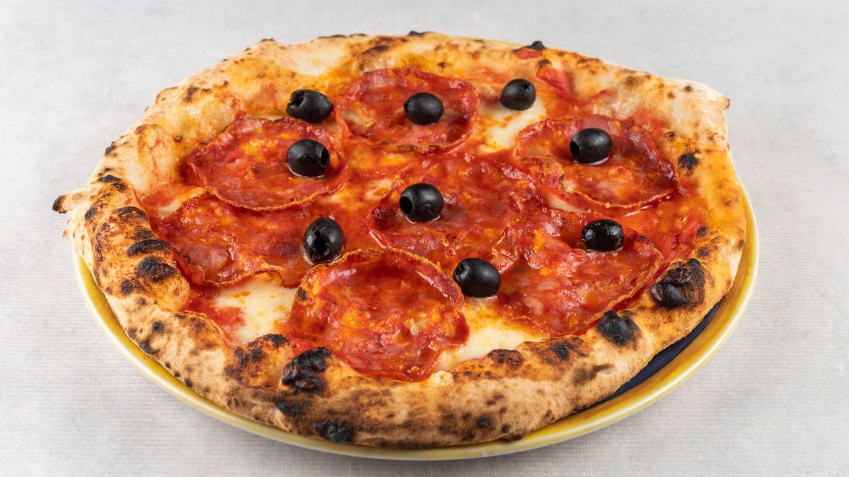 Ventricina, pelat, mozzarela, crne masline