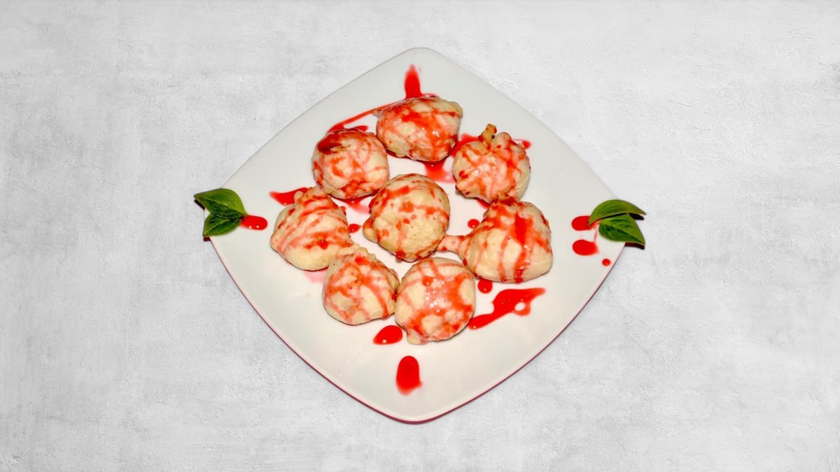 100g pork leg meat, 6 pineapple slices, green and red bell peppers, sweet and sour sauce