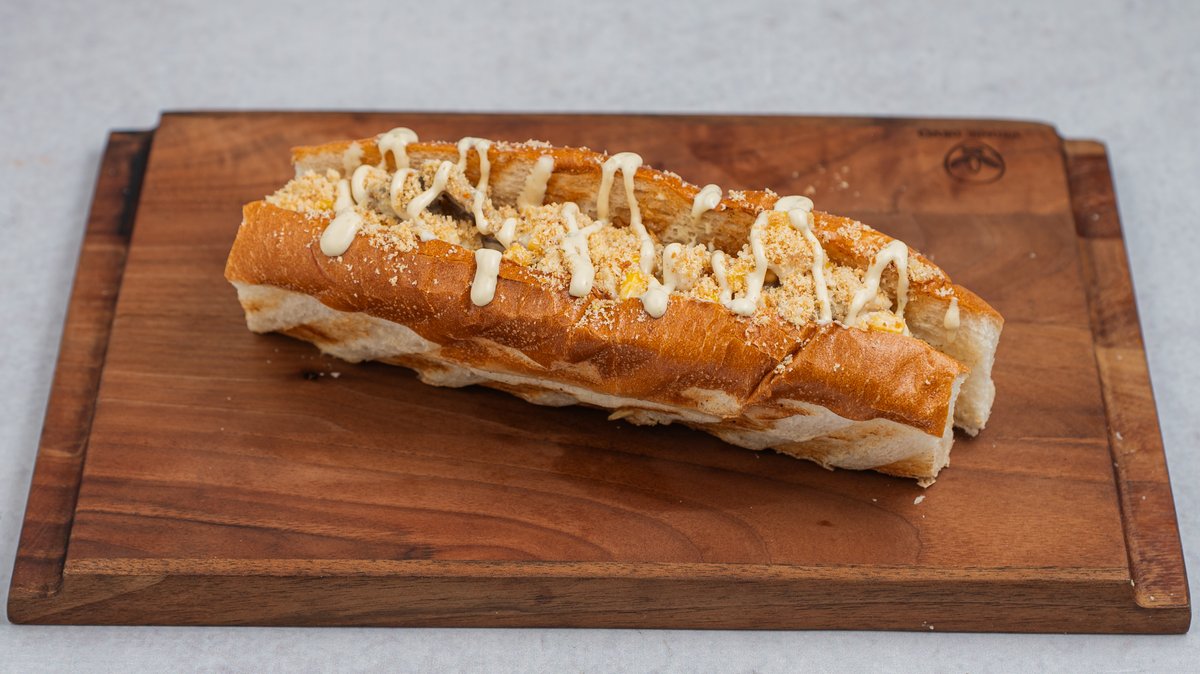 Kremasta salata od pilećeg filea, šampinjona, kukuruza i majoneza u prepečenoj puter kifli.