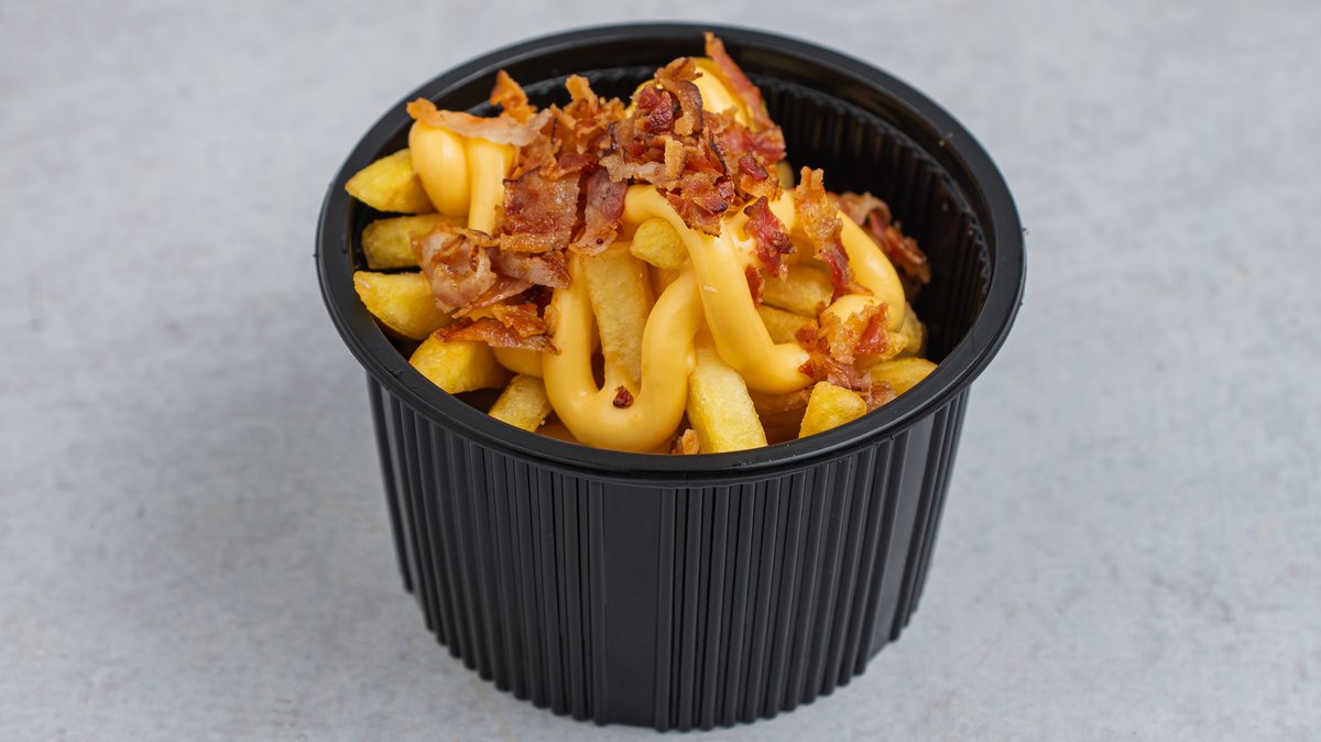 Pomfrit sa chedar sosom i slaninicom.