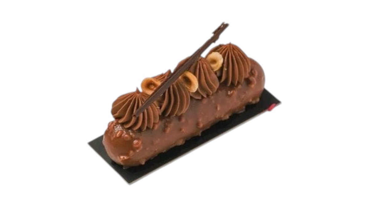 Mekana korica sa lešnikom, mus od mlečne Callebaut čokolade, lešnik krem sa hrskavim francuskim biskvitom