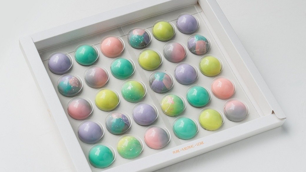 Bela čokolada sa usoljenim pistaćima i dehidriranim malinama; Mlečna čokolada sa lešnikom; Crna čokolada (54% kakaoa) sa bademom i đumbirom; Gold čokolada sa čokoladnim keksom i limetom; Ruby čokolada sa kokosom