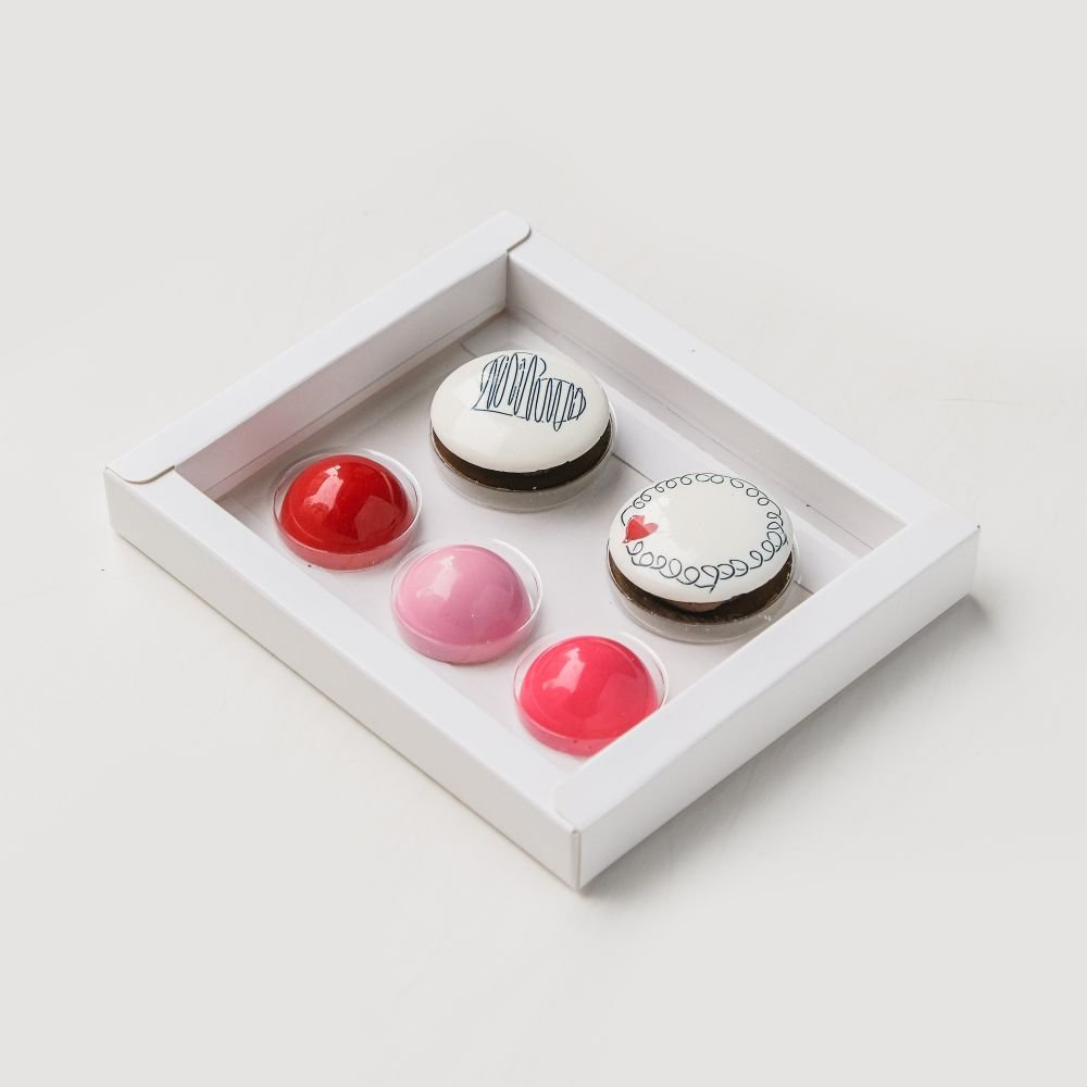 Crna čokolada sa Gotham punjenjem i đandujom; Crna čokolada sa mangom i marakujom; Bela čokolada sa malinama i pistaćima DOSTUPNOST: Dostupno za preuzimanje/dostavu od 09.02. Porudžbinu možete napraviti putem kontakt forme ispod. PORCIJA: 9 komada u kutiji