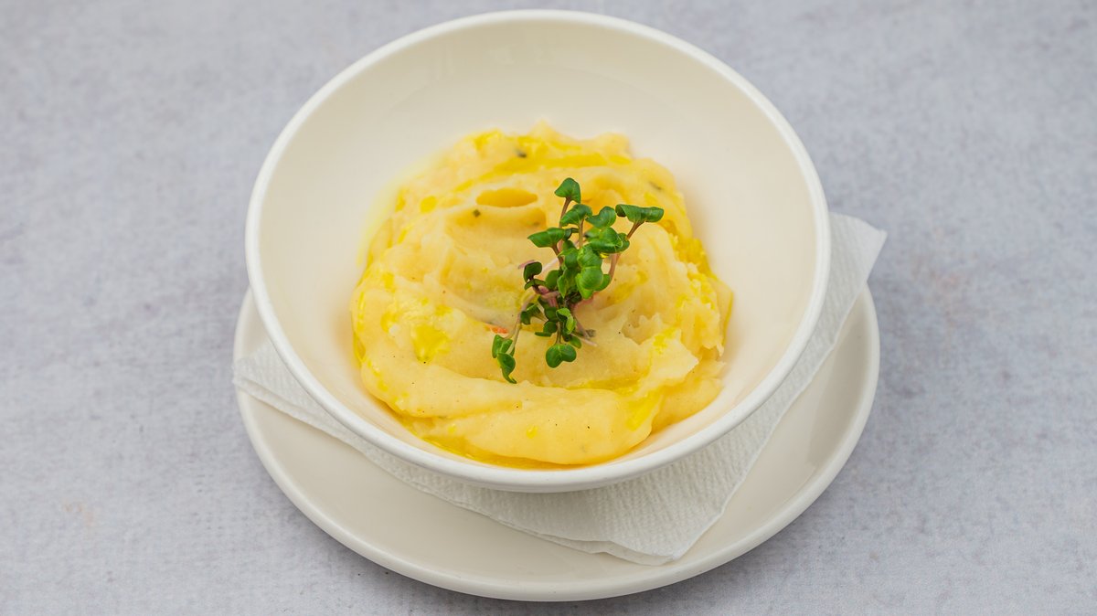 Piletina u pršuti, sos od parmezana i senfa na aromatizovanom krompir pireu