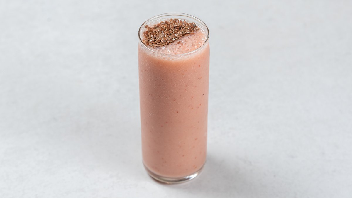 jagoda, banana, mango pire, lanenen semenke, biljno mleko