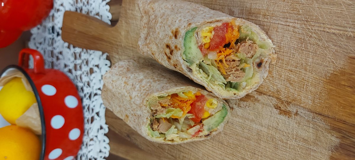 Integralna tortilja,humus,zelena salata,tunjevina,povrće,avokado