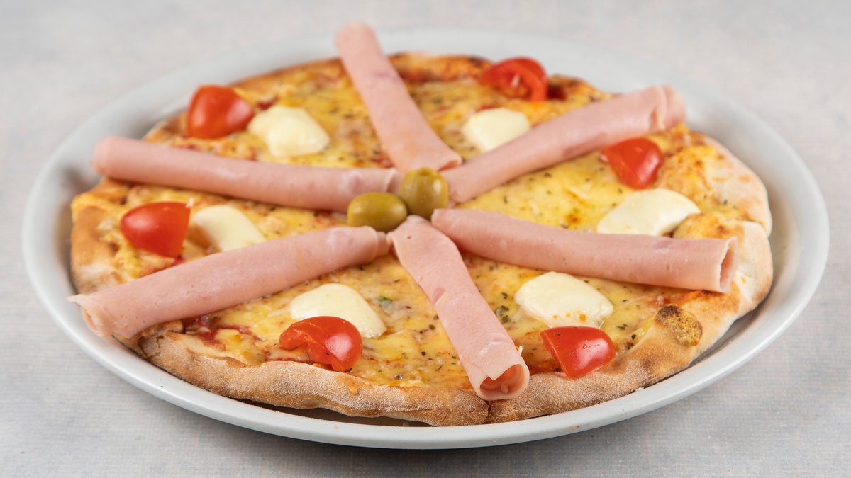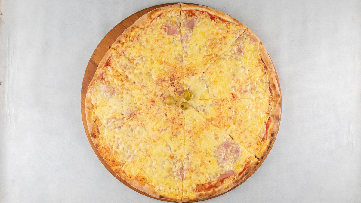 pelat, šunka, pečurke, kačkavalj, masline, origano