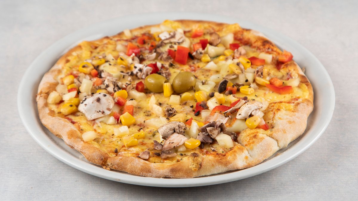 pelat, pečurke, paprika, kukuruz, kačkavalj, origano, masline