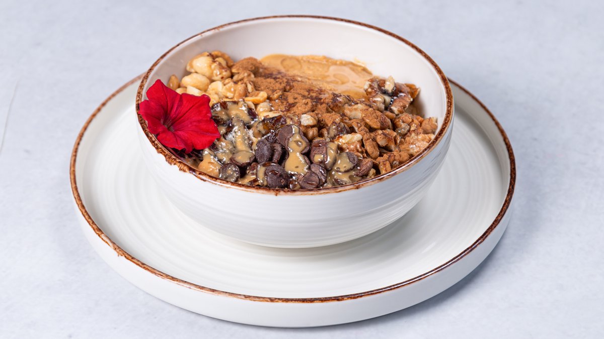 Ovsena kaša, Kikiriki krem, Kikiriki puter, Urme, Orah, Kikiriki, Choco drops, Agava sirup, Cimet